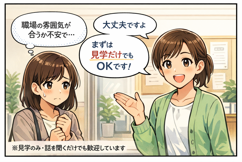 パートでの就業を希望される方には、勤務時間や働き方についても状況に応じてご相談いただけます。