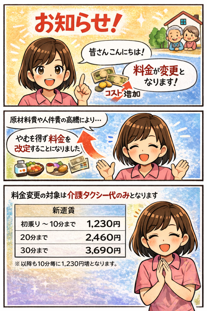 介護タクシー運賃変更について。